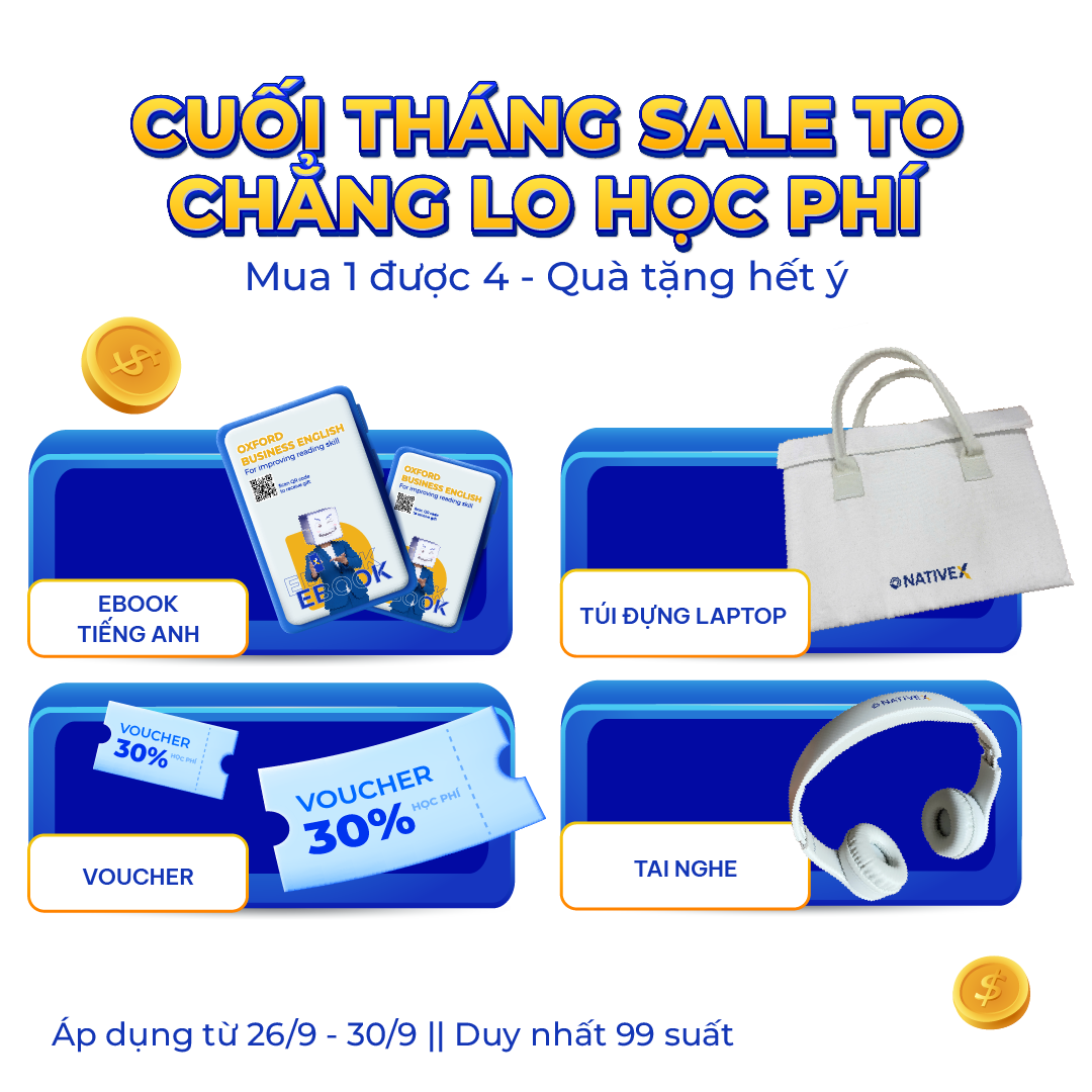 Nhanh tay đăng ký khóa học tiếng Anh online NativeX, chỉ trong 5 ngày vàng (26/9 – 30/9/2025) để nhận ngay combo “Mua 1 được 4” siêu ưu đãi dành riêng cho 99 học viên sớm nhất.