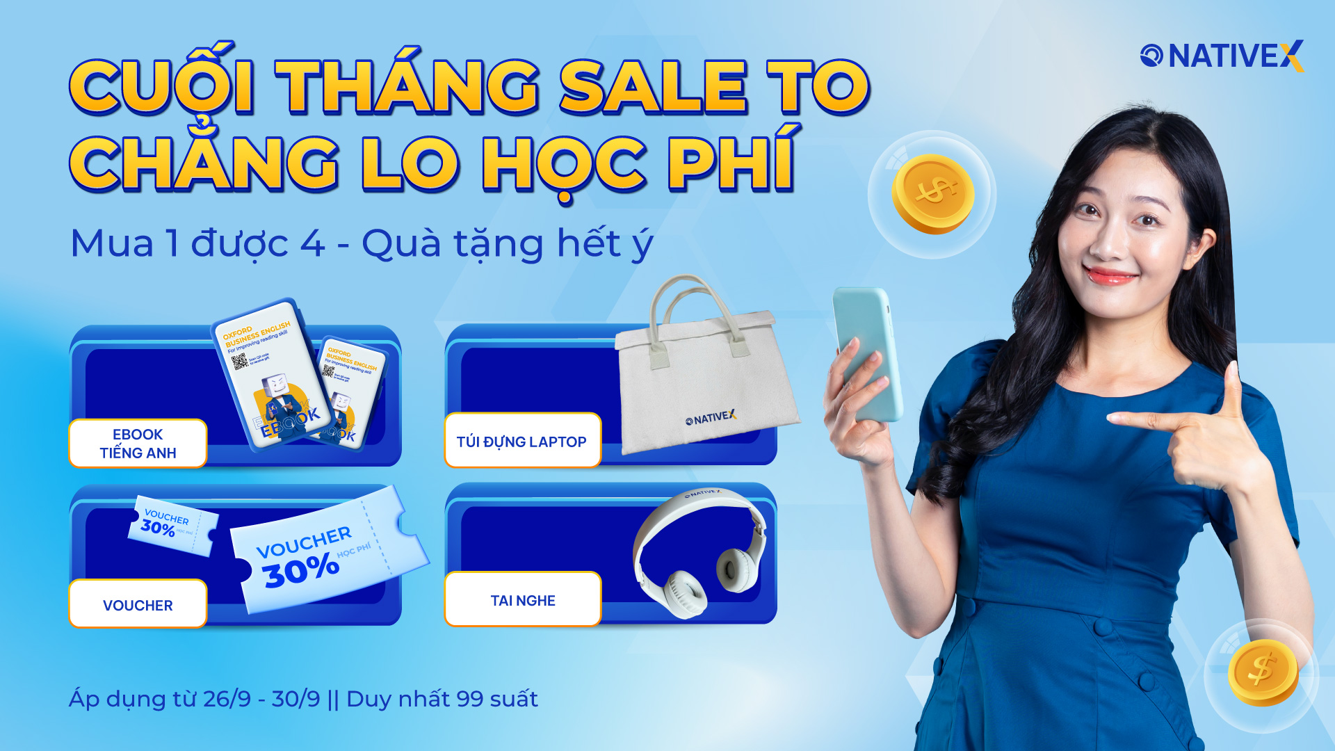 Nhanh tay đăng ký khóa học tiếng Anh online NativeX, chỉ trong 5 ngày vàng (26/9 – 30/9/2025) để nhận ngay combo “Mua 1 được 4” siêu ưu đãi dành riêng cho 99 học viên sớm nhất: